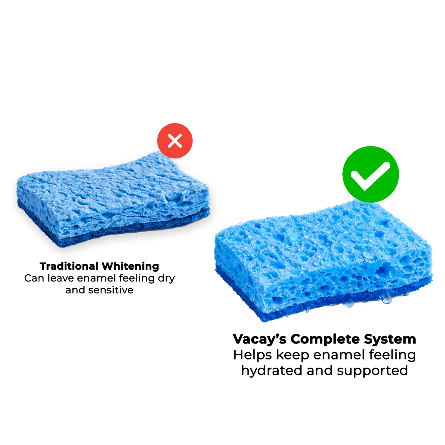 Most whitening stops at stains. Vacay goes further — with a 3-step system designed to brighten teeth, support enamel, and help maintain your results.